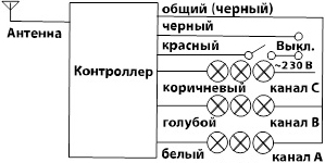 Пример подключения 3-канального контроллера к сети