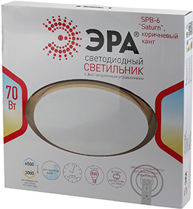 Светильник светодиодный настенно-потолочный "Эра" SPB-6-70-RC Saturn (70 Вт, 5950 лм, диммер, 3000 - 6500 К, IP20, коричневый кант), круг O570 мм, с пультом ДУ, белый