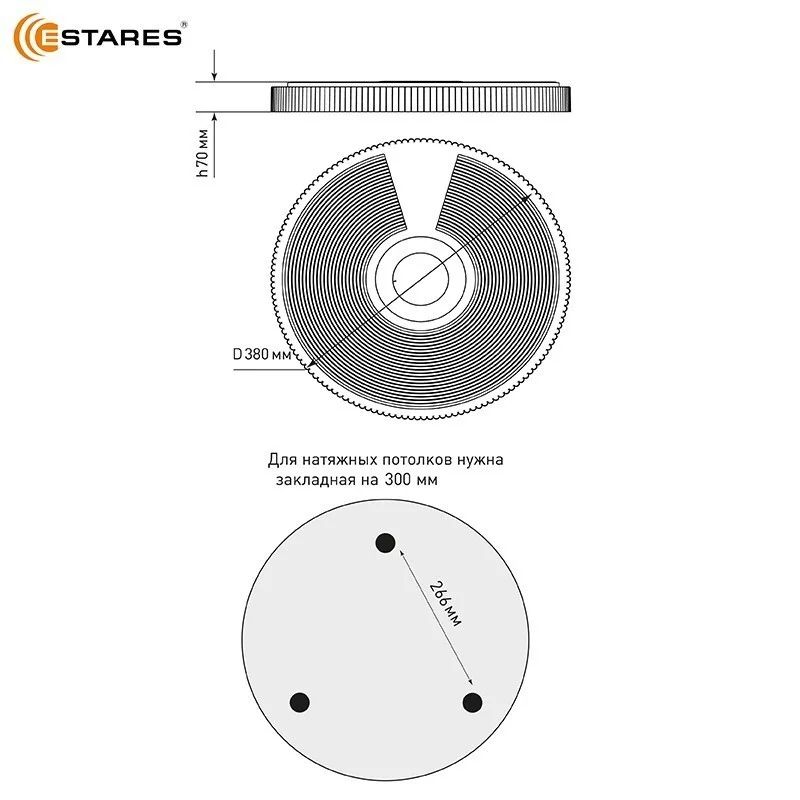 | Диаметр светильника, мм | 380 |