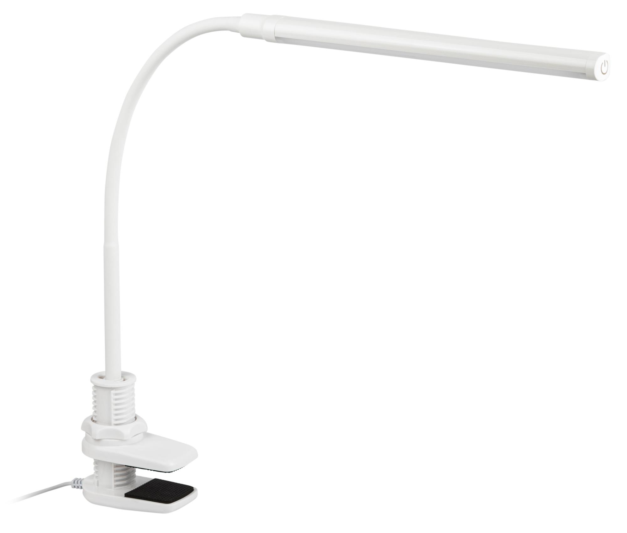 Настольный светильник со светодиодами (LED) в качестве источников света, 8 Вт. Модель на струбцине с сенсорным переключателем на плафоне. Плавная регулировки яркости. Высота плафона регулируется гибкой стойкой. Нейтральный белый свет - цветовая температура 4000К.