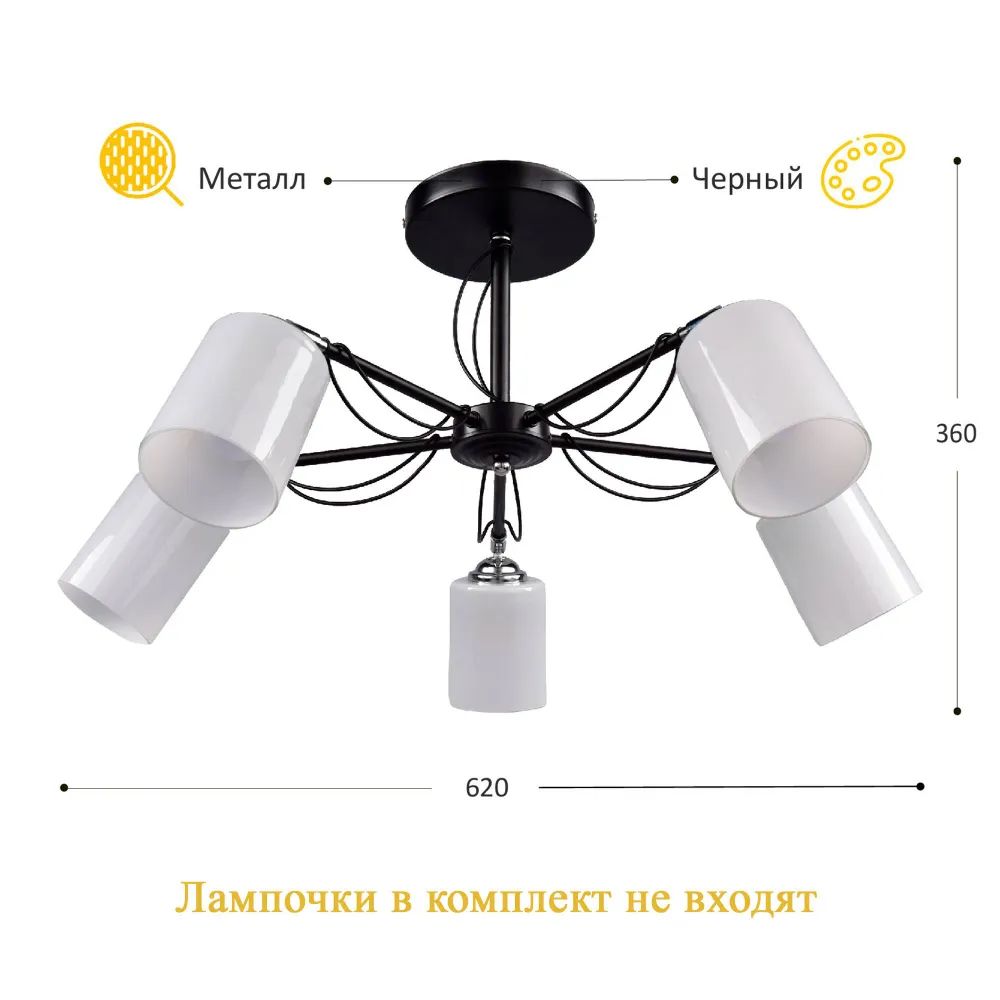 Светильник потолочный "Россвет" РС20999 BK+CR/5C "Бересклет" (5 х 60 Вт, Е27), черный / хром