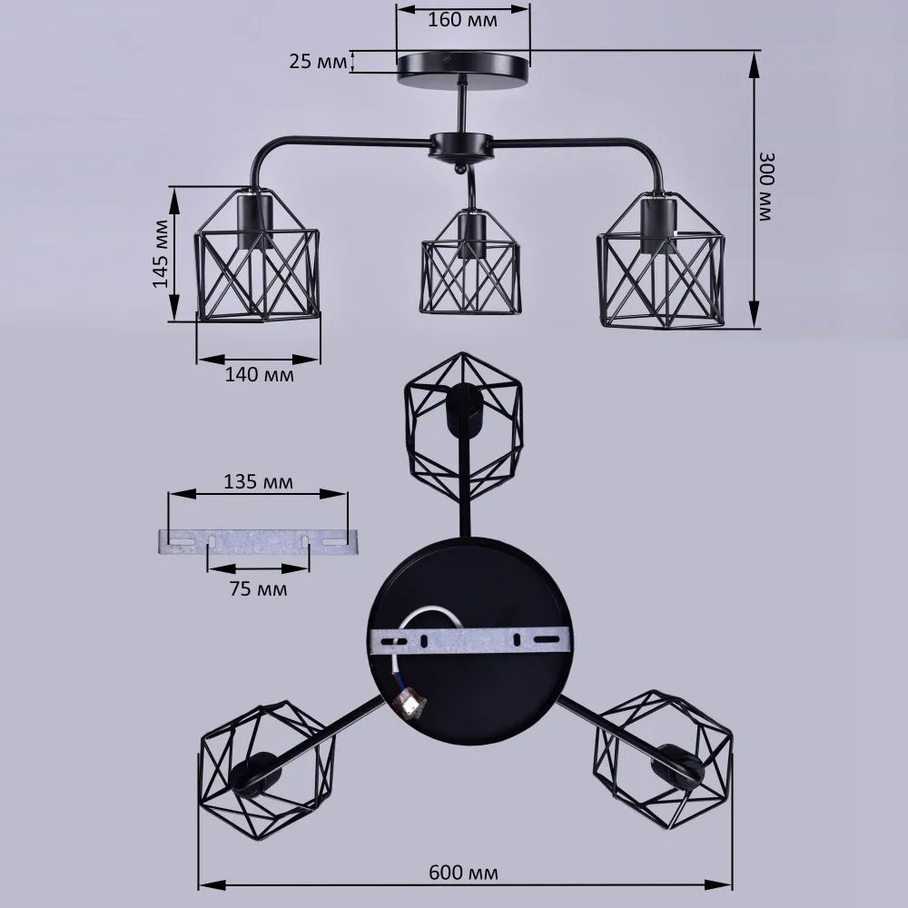 Светильник потолочный "Россвет" РС23016/3 (3 х 60 Вт, Е27), черный
