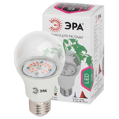 Фитолампа светодиодная "Эра" FITO-10W-RB-E27-K (220 В, E27, 10 Вт, А60 стандарт, красно-синий спектр), прозрачная