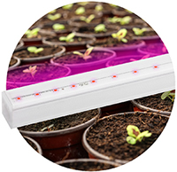 Результатом использования светильников красно-синего спектра станет равномерное, последовательное развитие рассады: