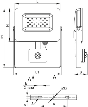 | Регулировка порога срабатывания в зависимости от уровня освещенности LUX, лк | 3 - 2000 |