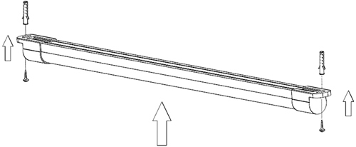 Для этого при помощи саморезов и дюбелей (в комплекте) закрепите светильник на поверхности через монтажные отверстия в крышке.