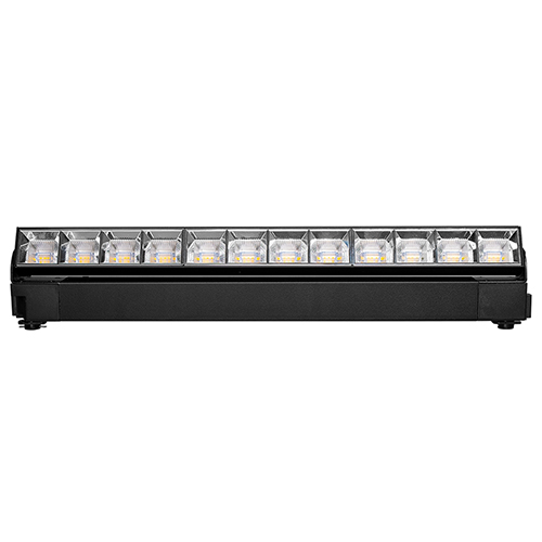 - Конструкция трековой системы обеспечивает перемещение прожекторов вдоль трека, что позволяет изменять уровень освещенности различных зон.