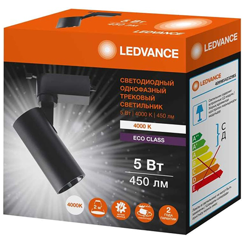 Светильник светодиодный трековый однофазный Ledvance ECO TRACKSP 1PH 5W 840 BKRD 40X1 RU LEDV (5 Вт, 450 лм, 4000 К), черный